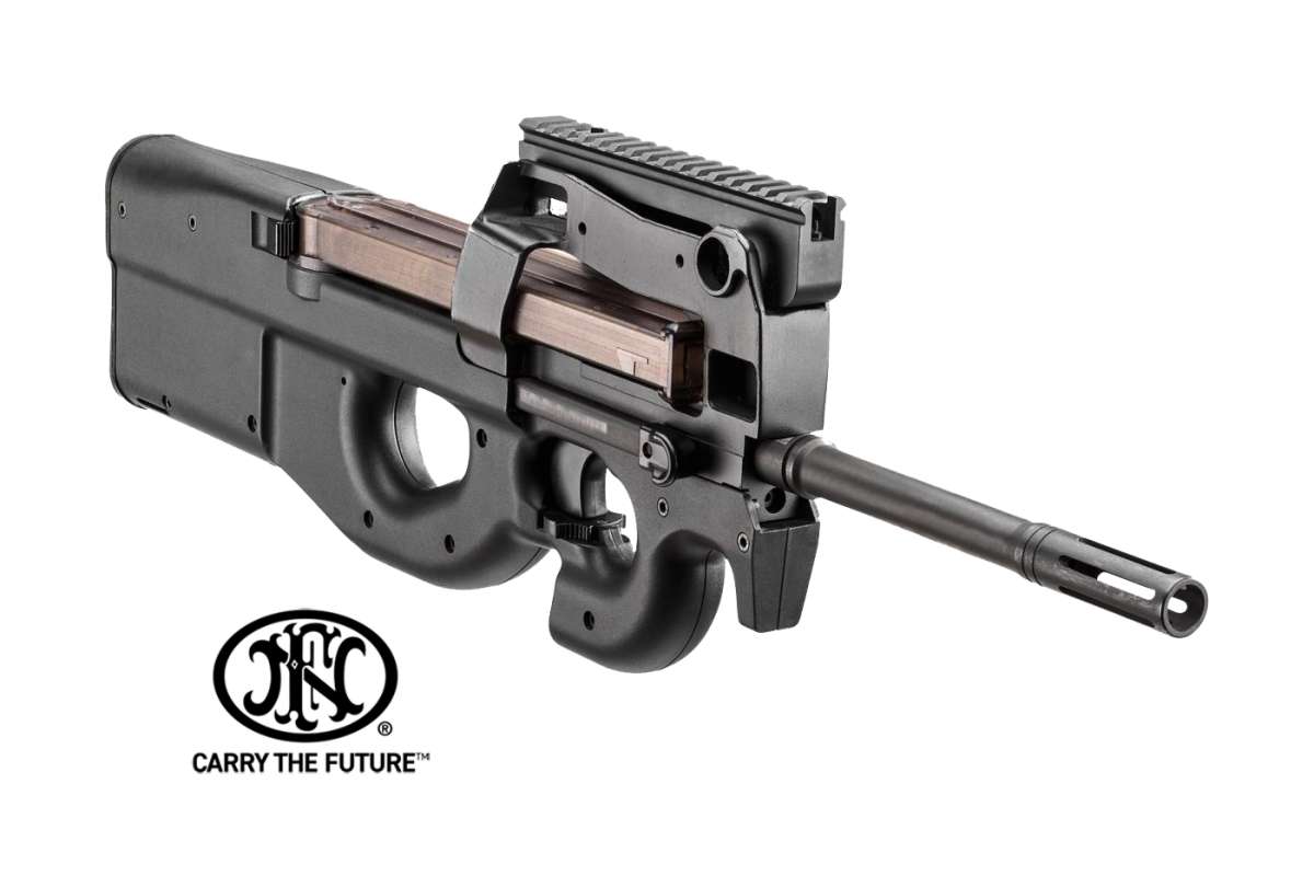 Das FN PS90 mit dem Kaliber 5,7×28 mm nutzt das Blowback-Verfahren und feuert mit geschlossenem Verschluss für höhere Präzision und Zuverlässigkeit. Zwei Spanngriffe und ein innovativer Kunststoff Schaft mit Daumenloch und eingearbeitetem Riemenbefestigungspunkt machen das FN PS90 beidhändig bedienbar.