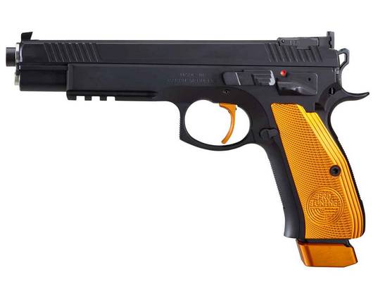 Die Taipan kommt mit einem 19-Schuss-Magazin und 2 Reservemagazinen, einem 6-Zoll-Lauf (153 mm) und einer Visierlänge von 206 mm. Der Magazinauslöseknopf kann auf Linkshandbetrieb umgebaut werden. Das Gesamtgewicht – inklusive leerem Magazin – beläuft sich auf 1.270 g. Diese erstklassige Sportpistole wird mit einem LPA TRT-Visier, einem fein überarbeiteten Single-Action-Only-Abzug (SAO) mit speziellem Alu-Abzugszüngel, einem abgestimmten Single-Action-Only-Hammer und Alu-Griffschalen mit scharfem Checkering (geriffelte Oberfläche) ausgeliefert.